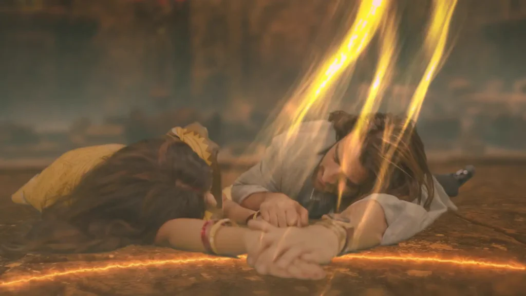 विधि शुरू होती है। विहान अपनी जीवन ऊर्जा गोलू को देता है। गौरी रो रही है। विहान कमजोर हो जाता है। गौरी विहान को धक्का देती है और खुद विधि में शामिल होने की कोशिश करती है। लेकिन विहान उसे रोक लेता है। दोनों अपनी ताकत गोलू को देते हैं। दोनों कमजोर होकर बेहोश हो जाते हैं। तभी गोलू जाग जाता है। सब खुश हो जाते हैं। गोलू अपनी शक्ति से उड़ने लगता है।